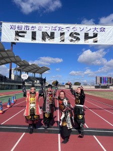 快晴のもと開催されましたかきつばたマラソンの開会式での演舞披露とスタート、ゴールの応援•おもてなしをいたしました!