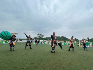 開場時のおもてなしに殺陣体験ブース、ハーフタイムでの応援演舞で盛り上げて参りました
