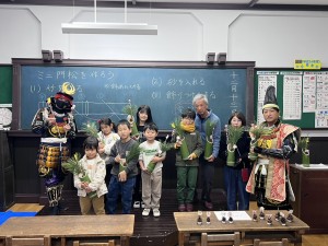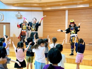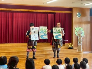 演舞や紙芝居、問答、殺陣体験、記念撮影まで盛りだくさんの内容でしたが、3歳児から5歳児のみんな最後まで元気いっぱい楽しんでもらえました。ありがとうございました!!